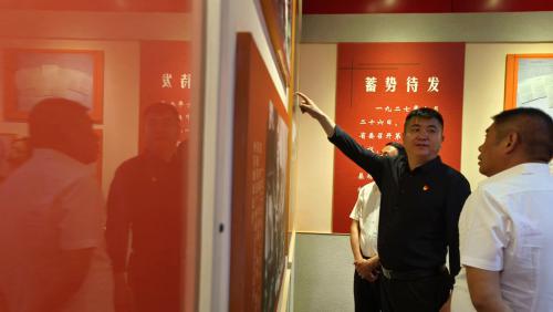 在纪念馆,党员们先后参观了渭华起义陈列大厅、渭华起义旧址和渭华起义烈士纪念碑。一件件珍贵的历史文物、一个个慷慨激昂的革命故事,无一不让在场的每位同志热血沸腾、肃然起敬。
