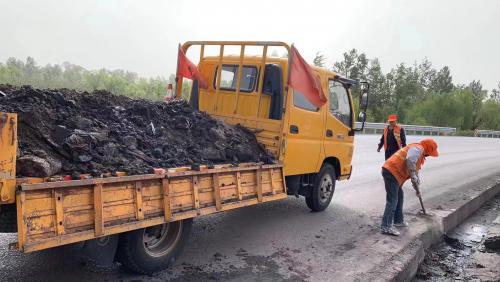 他们一起弯腰修补坑槽、维修护栏板、维修隔离栅、清理路面障碍;