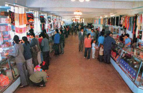 走进供销社,里面都有许多个组:食品组、用品组、烟酒组、五金组等等,每个组的所有商品,小的都按品类放在有明亮玻璃的柜台里,像雪花膏、香皂、图钉、摁扣、火柴、曲别针、缝纫机针、裤钩、篦梳和各种糖果、麦乳精等,大的像铁皮暖瓶、搪瓷盆、布匹、鞋帽、成衣等都摆在柜台后的货架上。食品组还有盛放酱油和醋的大缸,买酱油和醋,要自己带空瓶去打,售货员一般用一个金属“提漏”在缸里舀,“提漏”有半斤装的、有一斤装的。烟酒柜台里的香烟牌子不是很多,常见的几种有;凤凰、牡丹、恒大、大前门、公主、金丝猴、宝成、晨鹤、千狮桥等,酒大多都是高度酒,那瓶子也是最常见的细长脖子白玻璃的那种,有秦川大曲、西风等。用品组的柜台里有口琴、万花筒、圆规、直尺、铅笔、橡皮、三角板、文具盒,油笔、英雄牌钢笔、蘸笔尖、蓝墨水、兵乓球拍和图文并茂的小人书,总会有几个小朋友眼巴巴地围着看。