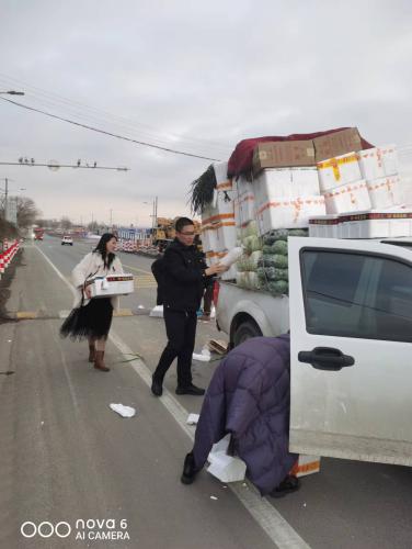 经询问了解,该车主运载蔬菜去往宁夏,由于心存侥幸未对货物采取严格的捆绑固定措施,导致蔬菜散落一地。眼看天寒地冻,蔬菜很快就会冻坏,检测员杨秀伟和张国峰立即帮助车主重新装载好蔬菜。车主临走时对检测员的帮助表示感谢,检测员暖心提醒车主安全驾驶,减速慢行。