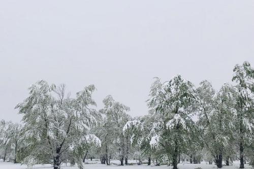 后院里无人触及的雪地里一个脚印也没有,不舍去踩,害怕破坏这美好景象。垂柳的枝条压满了积雪,毛茸茸,亮晶晶的。稍有风吹过,“不堪重负”的柳条将雪抖个精光。