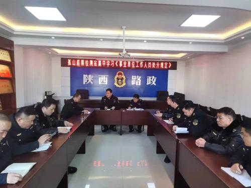 为深入贯彻习近平新时代中国特色社会主义思想,进一步增强全体干部职工的规矩意识,规范干部职工行为,保证干部职工依法履行职责,2024年1月4日,孤山超限站组织全体人员认真学习新修订的《事业单位工作人员处分规定》。