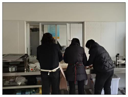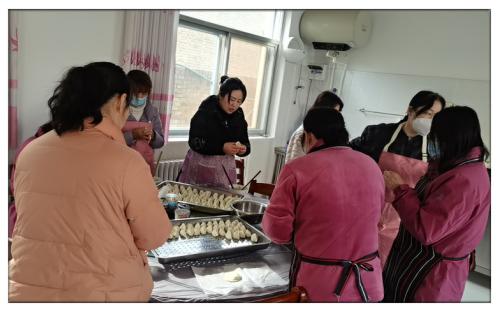 在单位的食堂,一上午大伙忙活着,他造饺子馅,你擀饺子皮,我来包饺子,大家在专注地忙着,闲谈、劳作、不亦乐乎。