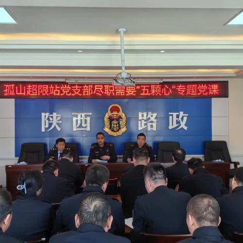 为更好的将公路治超事业推向新的高潮,明确工作目标,高质量的完成市公路局党委安排部署的各项工作任务,充分发挥基层党组织的战斗堡垒作用和党员干部先锋模范作用,3月19日,孤山超限站党支部开展专题党课,在站党员、新入职职工参加了聆听学习。