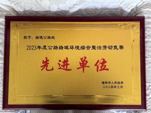 2023年,绥德公路段立足公路事业发展大局,始终践行“以人民为中心”发展理念,全力以赴抓养护、保畅通,抓安全、促发展,在保障公路安全通畅、美化公路环境中有效发挥职能作用,被榆林市人民政府授予“2023年度公路路域环境综合整治劳动竞赛先进单位”荣誉称号;被绥德县委县政府授予“2023年度目标责任考核优秀单位”荣誉称号。