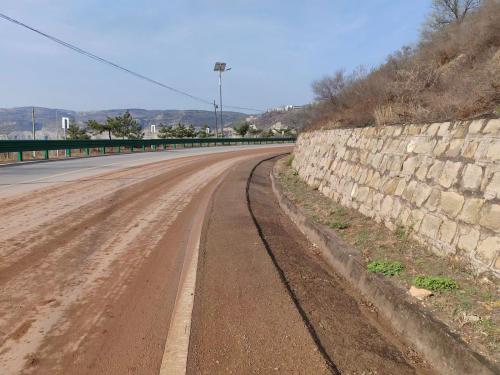 4月10日,受降雨影响,S201沿黄路府谷段K38+100M至K38+700M路段中,部分路面被生产车辆携带的泥土污染覆盖。府谷公路段路产保护人员在巡查过程中发现公路受污染情况,第一时间与周边工厂负责人取得联系,了解清楚情况,确定了污染行为主体,与之言清弊害。工厂负责人表示已深刻理解了该行为的不当性,并保证即刻出动清理车辆对路面污染进行清理。截止上午11时,受污染路段已全部清理完毕,路面恢复整洁畅通。
