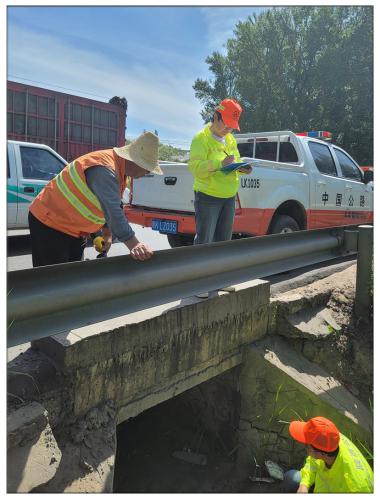 榆阳公路段于2024年5月6至5月11日开展安全隐患大排查工作。在副段长赵炜的指挥带领下,生产股技术人员全员出动,分组分线路调查养护辖区内管养路段实际情况。细致排查路面、桥梁、涵洞、边沟、挡墙、护栏等设施的现存状况,发现破损如实详尽记录汇报。详细记录设施病害位置、破损状况、工程量,并留存照片。根据病害状况进行分类处置,制定维修方案,限期维修。在急弯、陡坡、隐患路段及时增设明显的警示标志,采取交通管制,保障通行安全。