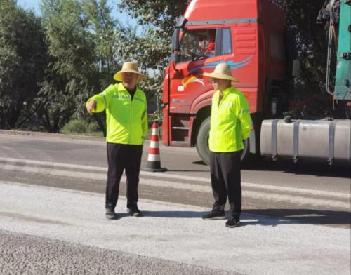 7月的陕北高温干旱,炙热如火。连续多日的高温“熏烤”也没有吓退我们勤劳勇敢的公路人。