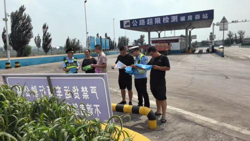 在严查的同时,路警联动人员在碾房峁超限站通过“面对面”宣传、发放宣传彩页、设置宣传标语等方式,提醒广大过往司乘人员积极配合联动工作,严格遵守交通法规,做好定期检查,发现破损及时更换,做到不抛洒、不滴漏,减少扬尘,共同营造安全、畅通、干净、绿色的路域通行环境。