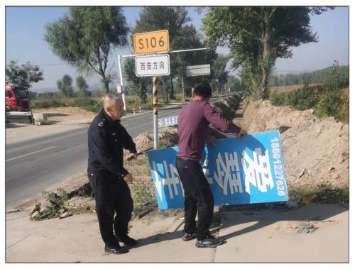 榆阳路政员认真坚守工作岗位,每天走在巡查线路的路上,对辖区路段的每一处不合规标牌、建筑、堆积物是路政员需要执法清理的日常工作,有时遇到肇事车辆需要协助车主与交警处理善后,每一项工作需要我们的路政员亲力亲为做到,人到、眼到、手到、做到,似简单、重复的工作要求他们时刻动起来,为我们榆阳公路的洁、美、安、适、保畅保驾护航。
