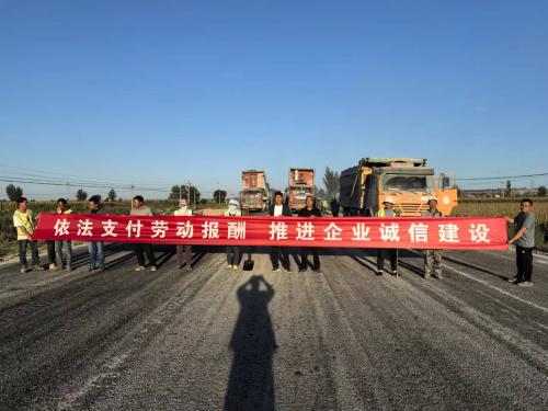 为切实维护农民工合法权益,确保农民工工资按时足额支付,9月24日,榆林市天元路业有限公司G307靖边至定边改建工程LM3标项目经理部开展了《保障农民工工资支付条例》宣传活动。