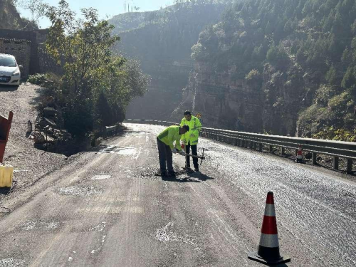 10月23日,吴堡公路段对所管养线路开展日常巡查时发现G307存在一处路面坑槽,随即组织养护人员对坑槽开展修补作业,保障群众出行安全。