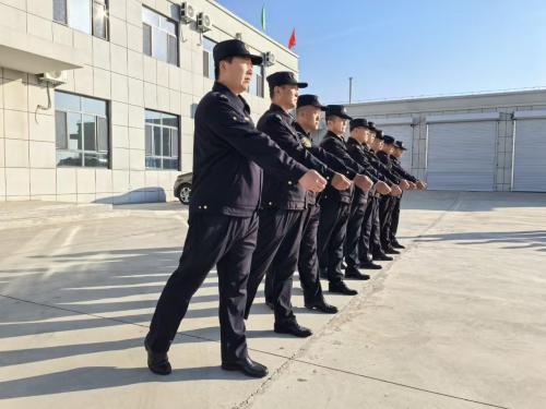 军训中,职工们统一着装,精神饱满、斗志昂扬,在退伍职工指导下,完成了停止间转法、跨立、敬礼、齐步走、交通指挥手势等训练科目,通过训练锻炼了体魄,磨炼了意志,充分展现了超限执法队伍良好形象。