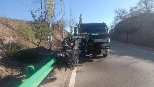 府谷公路段提前准备,在沿黄观光路集中开展了多项路域环境整治工作。对全路段进行清扫、并冲洗污染路段,修补路面病害,清理落石、清洗护栏,加大垃圾清理力度,与沿线各县、乡政府沟通配合对脏乱路段进行清理,沟通砂场负责人禁止出砂,保证路口干净整洁,暂时拆除限高架,配合赛中各类宣传引导和物资保障车辆通过。投入了大量人工和机械作业,保持自行车赛事路段路域环境美丽整洁。