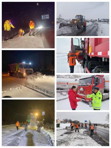 针对此次降雪,定边公路段主要领导靠前指挥,同值班人员留守单位值班值守,各股室、各班组实时分享降雪与路况信息,及时向上报送除雪保畅工作动态。次日凌晨4时,定边段全体人员出动清雪,采用巡查车压道、平地机和除雪辊等机械清雪,撒盐机撒融雪剂作业模式,在寒风凛冽中展开持续不间断的除雪融冰作业,铲冰声、风雪声交织成一曲冲锋号,原本被积雪堆积的道路逐渐被清理出来,紧随其后大家在路面撒布融雪剂……