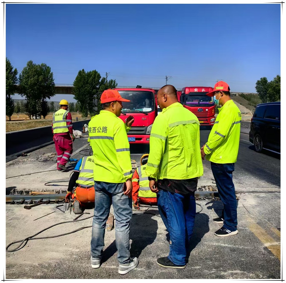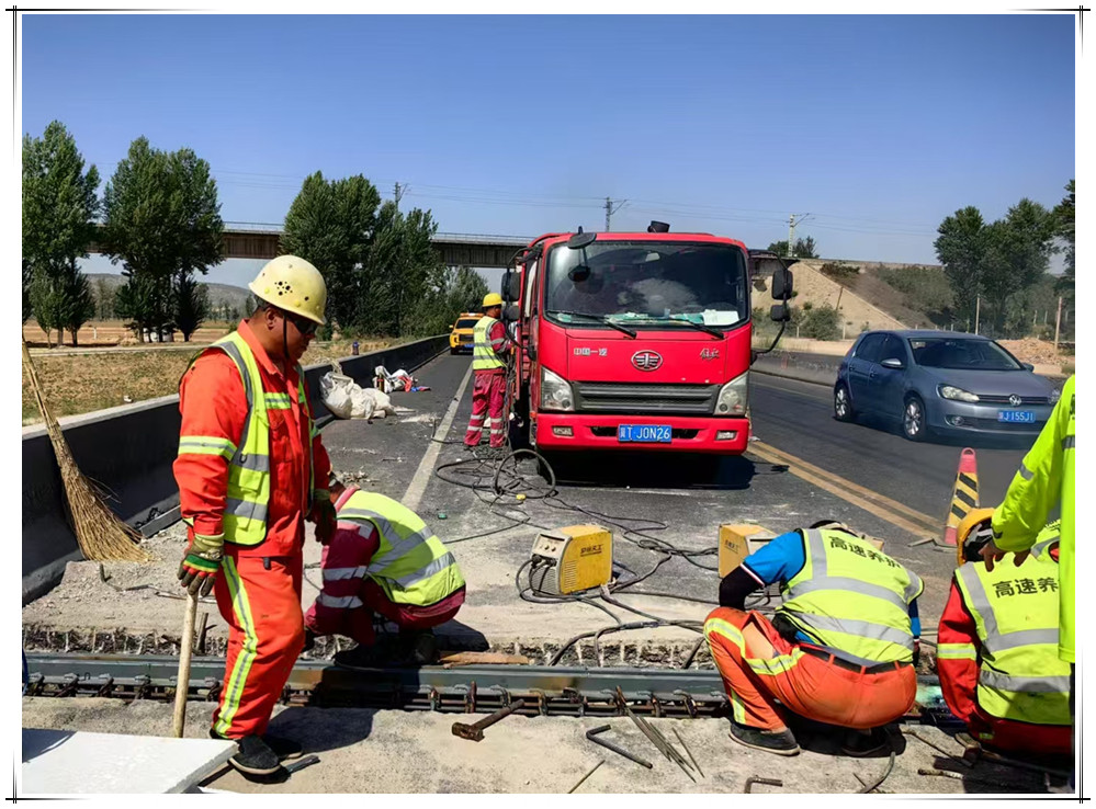 近日,榆阳公路段G242国道桥梁伸缩缝破损严重,为安全起见,安排施工队进行集中补修,段技术人员现场指导,路政人员现场进行交通安全疏导,半幅维修半幅通车,按照切割、凿除破损混凝土,植钢筋,安放伸缩缝,浇筑混凝土等步骤施工,目前已完成一道伸缩缝维修工作,成效显著,以保障车辆平稳通行。