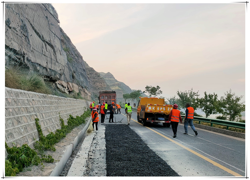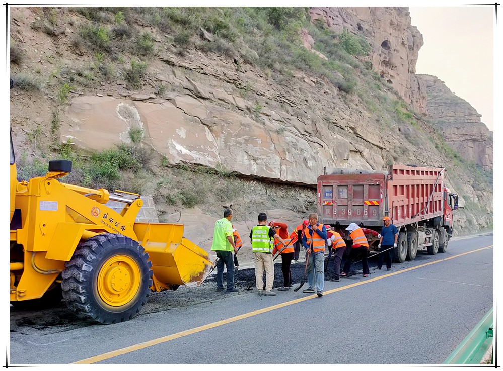 此时、此景、此事,只在当下注入鲜活的生命。手动、身动、机械在动,一切在养路人忙碌的身影中变化,随时间的推移,路面被一块又一块地修补,旧貌换新颜,注入新的活力。