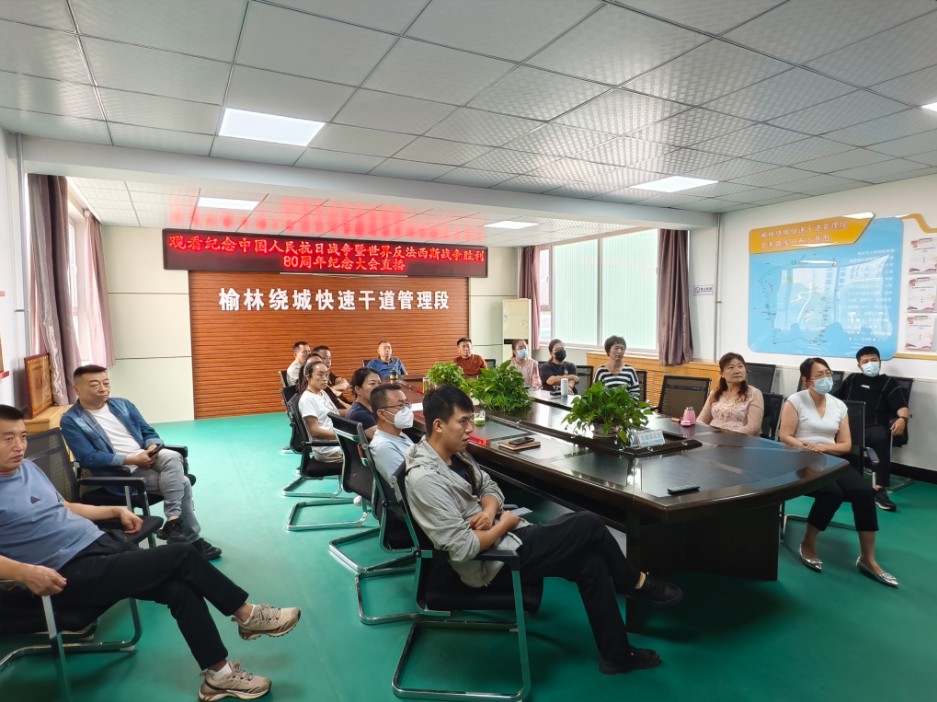 今年是中国人民抗日战争暨世界反法西斯战争胜利80周年,9月3日上午,纪念中国人民抗日战争暨世界反法西斯战争胜利80周年大会在北京天安门广场隆重举行,盛大的阅兵举世瞩目。榆林绕城快速干道管理段组织机关全体职工观看纪念大会和阅兵直播,共同见证这庄严肃穆、振奋人心的时刻。