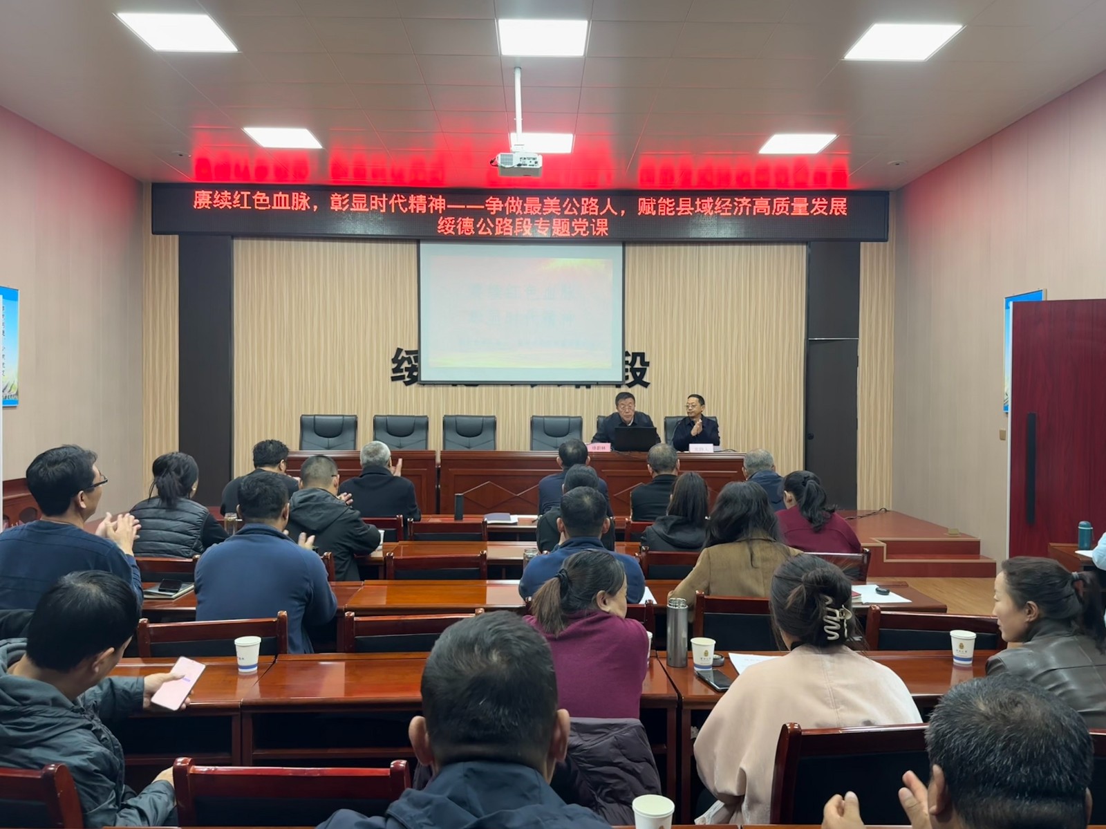 10月28日,绥德公路段特邀绥德县文联主席徐蔚林开展第四季度专题党课。本次党课以“赓续红色血脉,彰显时代精神——争做最美公路人,赋能县域经济高质量发展”为主题,为全体干部职工呈现了一场内容丰富、图文并茂的精神盛宴。