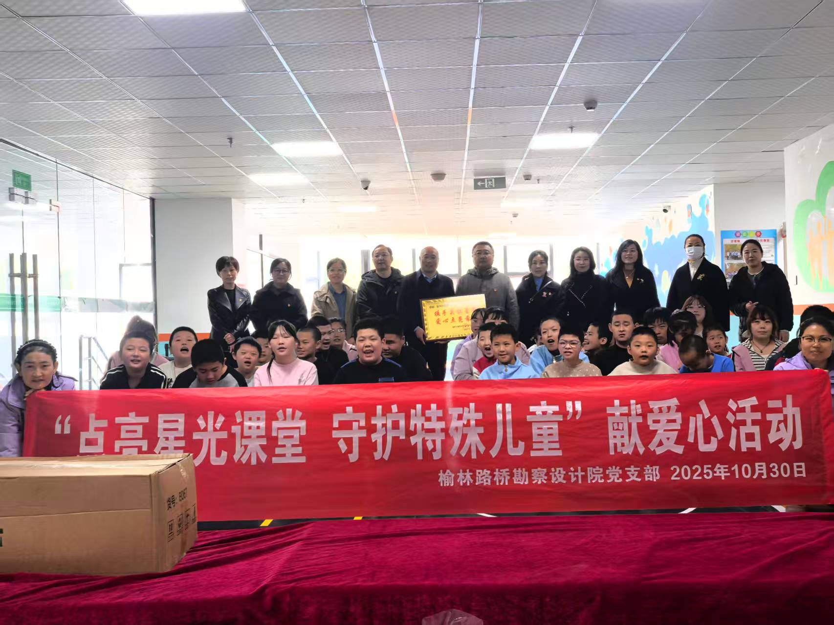 为积极践行社会责任,充分发挥党员先锋模范作用,增强党支部凝聚力与向心力,2025年10月30日上午,榆林路桥勘察设计院党支部组织全体党员及积极分子,前往榆林星缘自闭症儿童康复教育中心,开展“点亮星光课堂,守护特殊儿童”献爱心主题党日活动,为特殊儿童群体送去温暖与关怀。