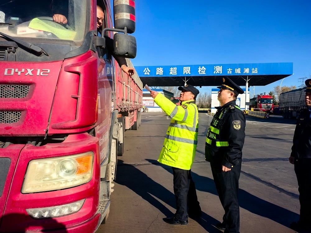 为坚决遏制货运车辆超限超载违法行为,切实防范道路交通安全事故,保障群众出行安全,近日,古城滩超限站主动牵头,联合交通执法支队、交警支队开展集中治超专项行动,以部门协同发力强化执法监管,全力规范辖区道路运输秩序。