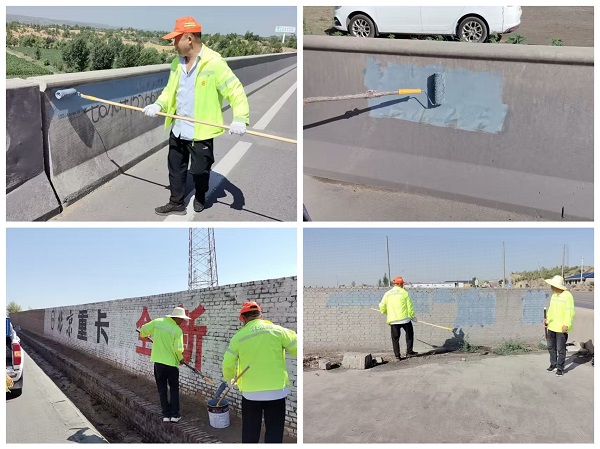 在路域环境治理中,我段坚持常态化推进与集中攻坚相结合,每月开展专项整治行动,靶向破解“脏、乱、差”问题。全年累计清理各类堆积物2837立方米,拆除非公路标牌75块,封闭非法平交道口13处,覆盖非公路标语5936平方米,取缔涉路摆摊设点15处,修复损坏路宅隔离墙130立方米,有效净化了公路通行环境。同时,强化绿化管护精细化水平,完成5600棵行道树粉刷、12600棵树木修剪,重点对G210榆靖一级公路两侧行道树进行系统修剪和刷白处理,提升了沿途景观整洁度,进一步优化了群众行车舒适度。