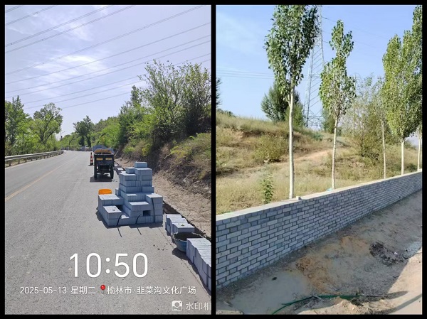 为凝聚治理合力,破解沿线治理难题,我段主动加强与横山区响水镇政府的沟通协作,通过多次走访座谈、现场踏勘,就S106 韭菜沟路段路宅分家隔离墙修建工作达成共识。由我段负责协调涉路相关事宜,镇政府负责工程实施,经过2个月的联合攻坚,该路段旧貌换新颜,构建起“路地共建、协同共治”的良好格局。