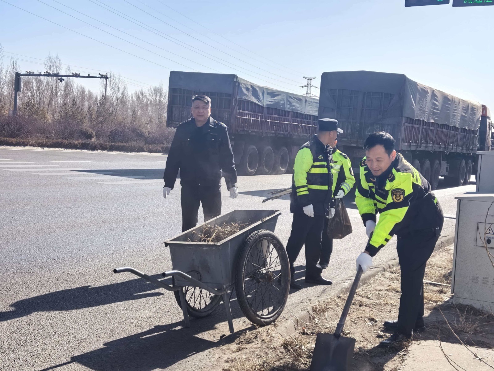 行动开始前,鱼河超限站召开工作部署会,明确责任分工与清洁标准,要求全员参与、全面整治。会后,清洁行动迅速展开,重点对办公区域、检测场地、卸货场地等进行了彻底清扫,擦拭设施设备,规整物品摆放,清理房前屋后、沟渠两侧的垃圾杂草,确保站区环境整洁明亮。之后对辖区村庄道路及周边干线公路进行了重点清理,清扫路肩边坡,清除白色垃圾和堆积杂物,有效美化了道路环境。在清洁过程中,积极向村民宣传环境保护理念,引导村民共建美丽家园。