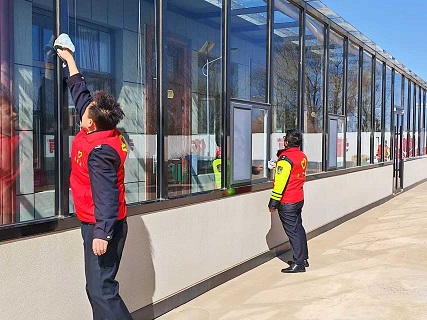 活动中,志愿者们带着抹布、扫帚、拖把等清洁工具,迅速投入到卫生清扫工作中。大家分工协作、干劲十足,有的仔细擦拭门窗、桌椅、扶手,有的认真清扫院内道路、走廊的落叶和杂物,有的耐心清理角落的卫生死角,不放过任何一处细节。经过近两个小时的忙碌,养老院的室内外环境焕然一新,各个区域变得干净整洁、井然有序。