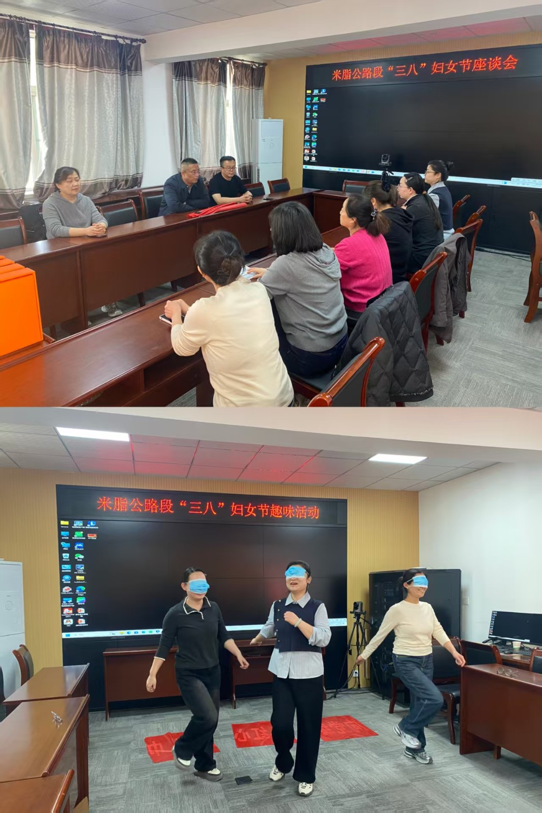 参观体验结束后,在段三楼会议室组织召开了庆“三八”专题座谈会,段领导代表全体职工向女职工们致以节日的美好祝福,对大家在各岗位上的辛勤付出和无私奉献给予充分肯定。女职工们畅所欲言交流心得,现场氛围暖意融融。座谈会后,蒙眼原地踏步、蒙眼走直线等趣味活动精彩上演,大家踊跃参与、各显身手,现场掌声、笑声不断。活动最后,单位为参与趣味活动的女职工颁发了参赛礼品,大家在欢声笑语中收获满满。