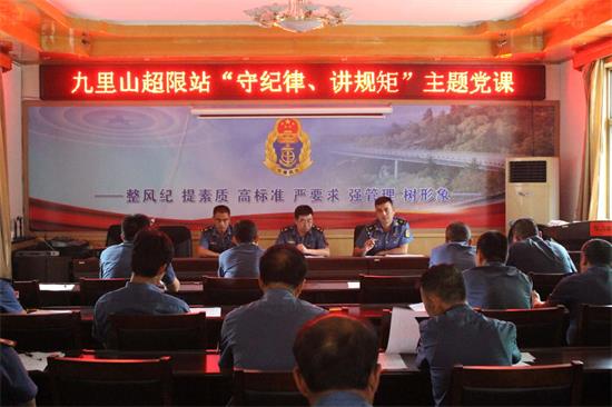 为进一步推动全县纪律教育学习宣传月活动深入开展,全面加强党员干部的日常教育和监督管理,切实提高党员干部的纪律意识和规矩意识。7月31日,九里山治超站党部组织开展了“守纪律、讲规矩”主题党课,站领导班子成员、全体党员参加了聆听学习。
