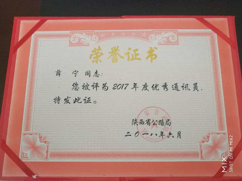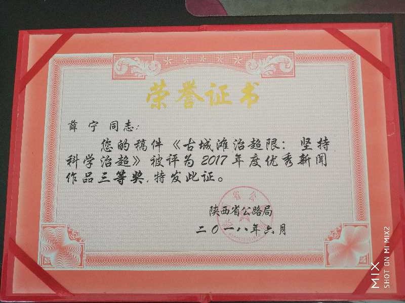 近日,榆林古城滩超限检测站薛宁同志撰写的《古城滩超限检测站:坚持科学治超》被陕西省公路局评为2017年度优秀新闻作品三等奖,同时他本人被陕西省公路局评为“2017年度优秀通讯员”。