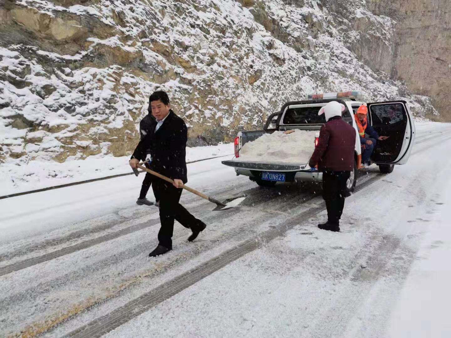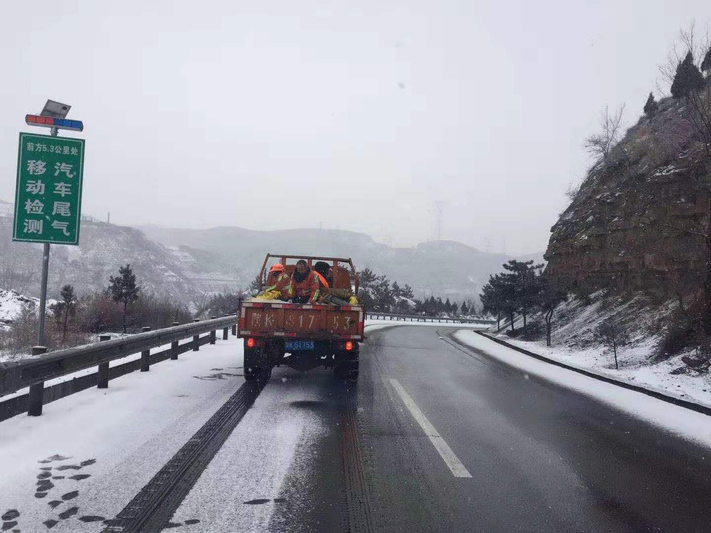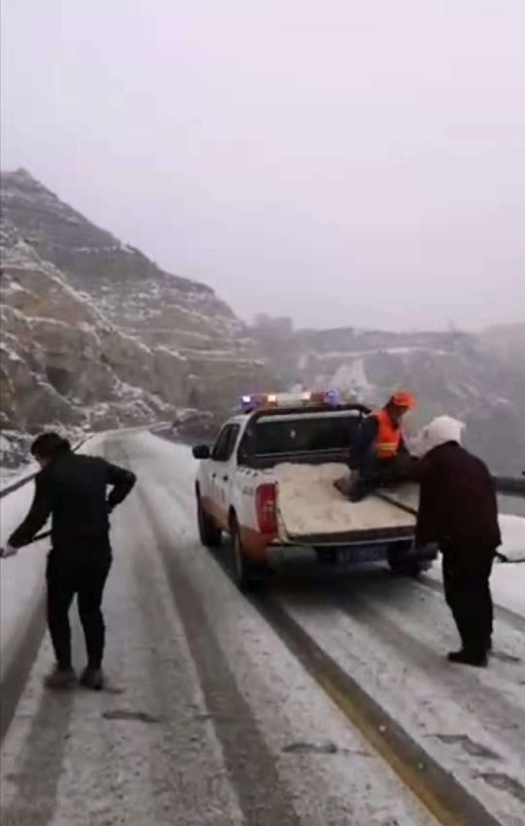 车窗外雪花飞舞,山上白了,树上白了,路面上象铺上了一层白色的地毯,一个个桔红色装点了白色的世界,他们拿着扫帚,除雪铲一下一下的清理着路面积雪,在这寒风刺骨雪花飞舞的冬日里,他的脸和手冻的通红,帽子上,眉毛上,身上都是雪,好像圣诞老人,又好像是一个机器人一样,不知疲惫的挥动着扫帚,让路面恢复了他原来的面容,此刻我多想给他们一个火炉和一杯开水,让他们烤烤火,喝点开水歇一歇。可他们还要忙着在沿线陡坡,急弯,阴背路段撒盐,防滑料,确保行车安全畅通。他们为了公路的安全畅通,一点也不敢松懈,任劳任怨,默默无闻的奉献着,他们是公路的守护神。就这样日复一日,年复一年,在这条公路上谱写着他们的人生,演奏着属于他们的乐曲。