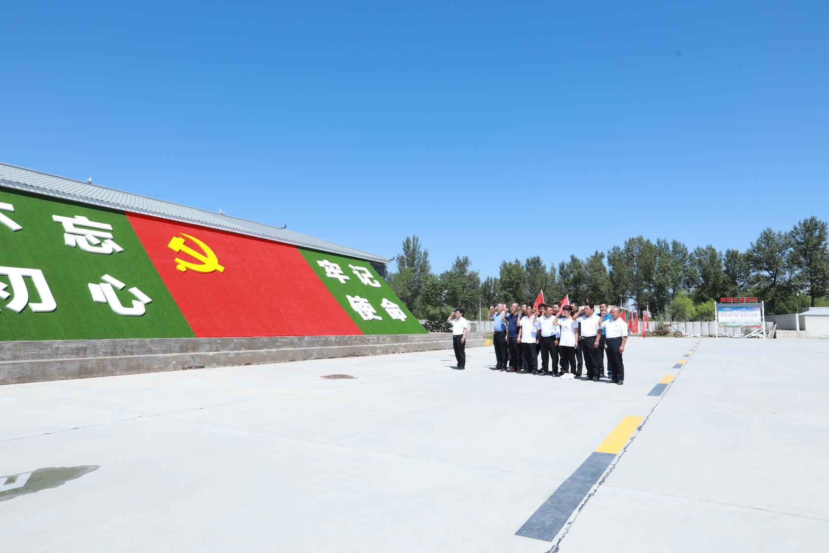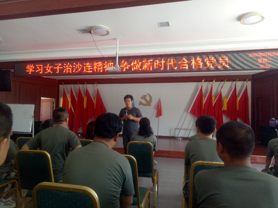 在补浪河女子民兵治沙连,党员们参观了女子民兵治沙连展览馆,认真聆听了讲解员对该连艰苦奋斗历史的介绍,学习了老一辈无产阶级前辈们扎根沙漠、立志治沙的顽强拼搏精神。为了坚定党员信念、提高党性觉悟,全体党员在党旗下再次进行了宣誓,重温了入党誓言。