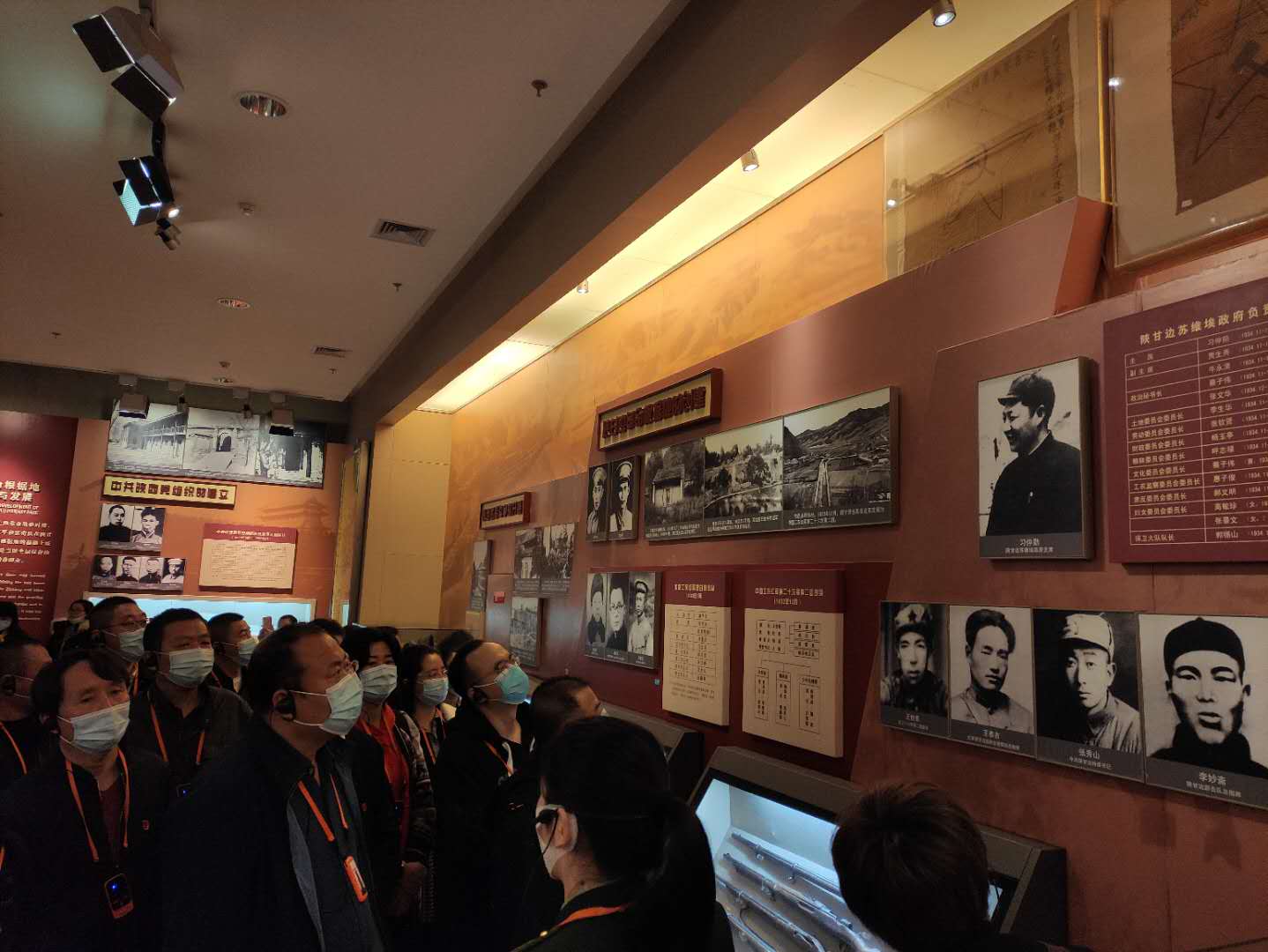 最后一日,一行人先后来到延安革命纪念馆、杨家岭革命旧址等地参观学习。延安革命纪念馆分为红军长征落脚点、抗日战争的政治指导中心、新民主主义的模范试验区、延安精神的发祥地、毛泽东思想在全党指导地位的确立、夺取全国胜利的出发点六个单元。整个展厅通过大量的珍贵的历史照片、文物、雕塑、油画、艺术品展览,场景复原以及多媒体演示等方式,多角度、全方位地展示了党中央和毛泽东同志在延安领导中国人民英勇斗争的光辉历史。在杨家岭革命旧址,党员们依次参观了毛泽东、朱德、周恩来、刘少奇等领导同志当年的旧居以及中共七大会址,一间间普通的窑洞,一张张斑驳的桌椅,再现了老一辈无产阶级革命家曾在这里运筹帷幄,决胜千里,领导和指挥了抗日战争和解放战争的历史时刻。大家在参观学习的过程中深刻感受了艰苦奋斗、理论联系实际、不断开拓创新、实事求是的延安精神。