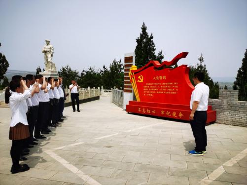 走进交口红色教育基地展览馆里,大家在讲解员的带领下参观了革命文物展览,聆听刘志丹同志革命先辈光辉事迹,大家都怀着无比崇敬的心情驻足观看,了解刘志丹等革命先烈的英勇事迹和舍生忘死的壮举。参观后在一面红色的宣誓墙前,全体党员佩戴党徽,面对党旗,庄严地举起右手,重温入党誓词,接受党性教育和精神洗礼。在红色教育基地大家还瞻仰了刘志丹将军塑像,集体歌唱了《没有共产党就没有新中国》并朗诵了毛泽东同志的《为人民服务》,表达对烈士的敬仰之情。