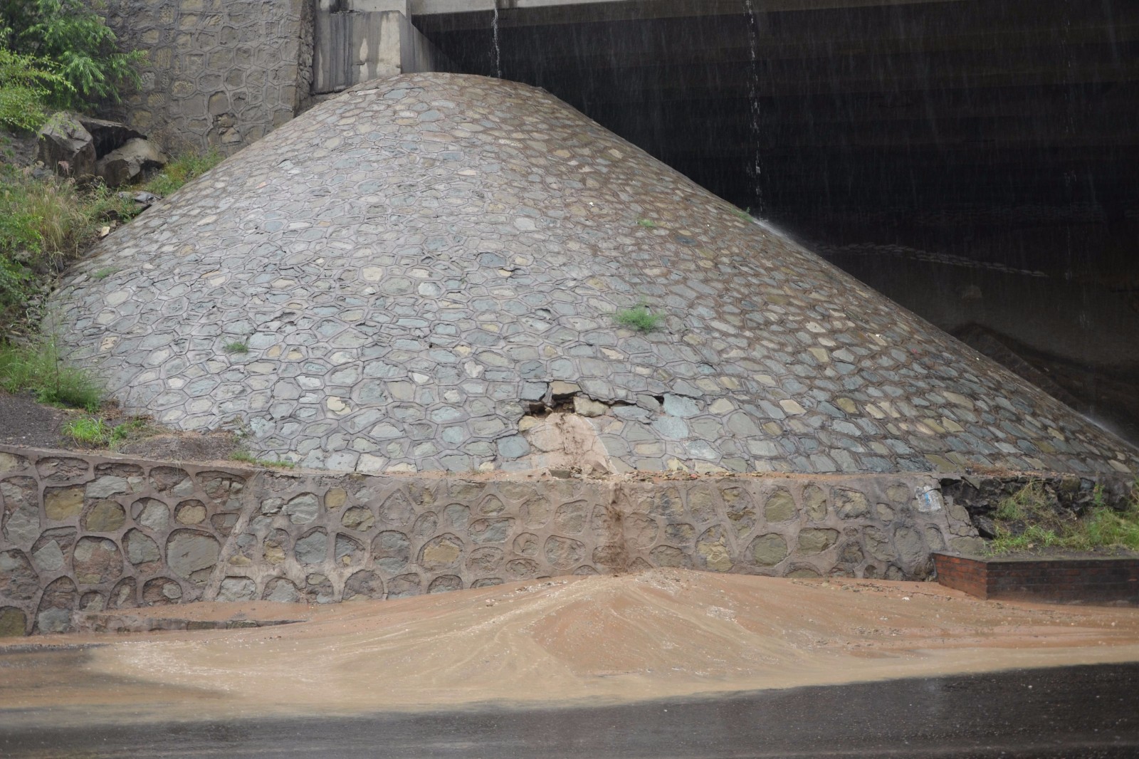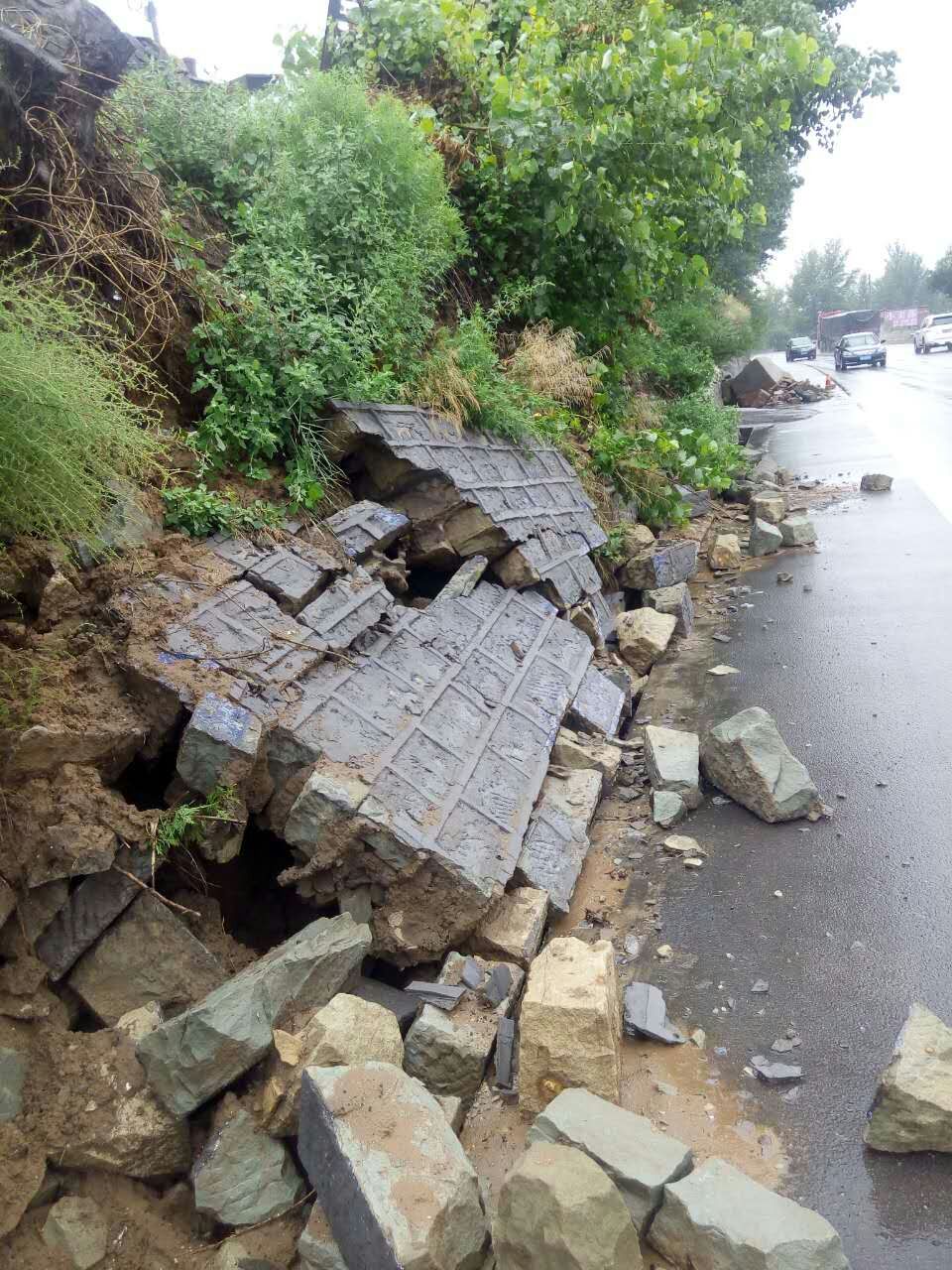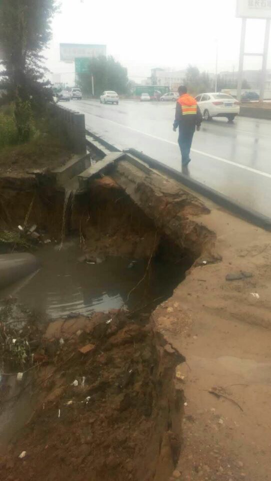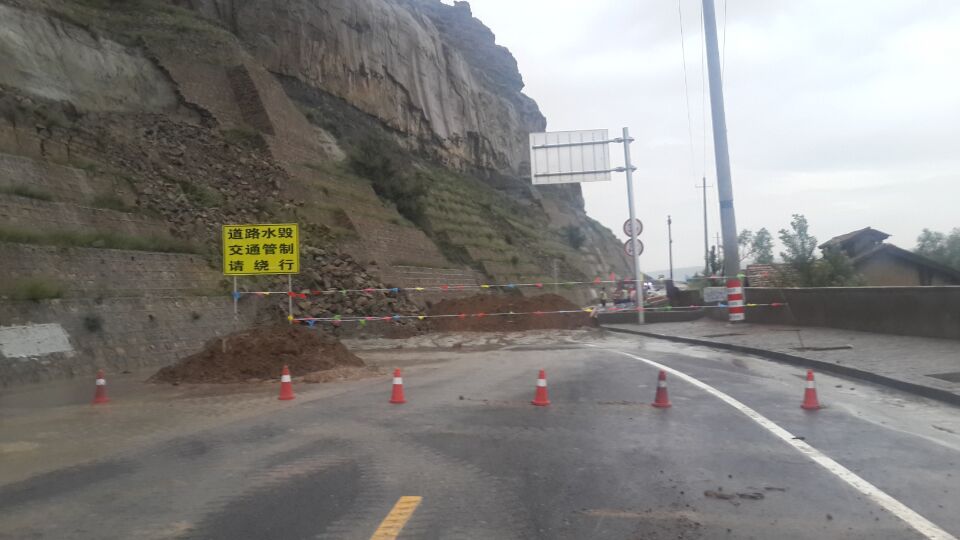 暴雨冲毁路基、锥坡,掏挖路肩路面,边坡、挡墙坍塌,路面淤积、路面积水严重,危及过往车辆的行车通行安全,S219店石线高危边坡路段交通中断。 水毁灾情发生后,神木段领导高度重视,第一时间赶赴水毁现场,迅速组织抢险人员、物资、机械,及时展开紧急排险,力争以最快的时间,抢通交通,消除隐患,确保公路安全畅通。