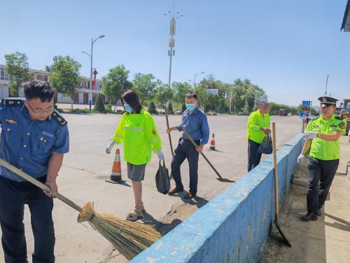 为积极配合鱼河镇政府全国文明城市创建工作,2022年6月13日,鱼河治超站党支部以党员活动日为契机,组织党员开展“争创文明城市 党员在行动”主题党日活动,对站区内道路两侧的白色垃圾等进行彻底清理。