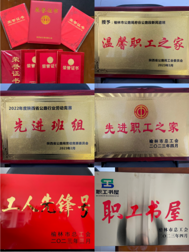 近日,从省交通运输厅工会、省公路局工会、市总工会传来喜讯,榆林市公路局系统工会荣获陕西省交通运输系统工会工作先进集体、榆林市劳动竞赛先进集体;榆阳公路段荣获陕西省公路行业工会工作单项突出先进集体;府谷段新民道班、绕城段城关道班被陕西省公路局工会授予“温馨职工之家”称号;大保当超限站荣获陕西省公路行业劳动竞赛先进班组;靖边段乔沟湾道班被榆林市总工会授予工人先锋号称号;第一路桥工程处被榆林市总工会授予先进职工之家称号;公路养护中心被市总工会命名为市级职工书屋。曹小燕被陕西省交通运输工会评为“优秀女工干部”;刘媛被陕西省公路局工会评为优秀工作者;郭海宝荣获陕西省公路行业劳动竞赛先进个人;李晓明荣获榆林市劳动竞赛先进个人。