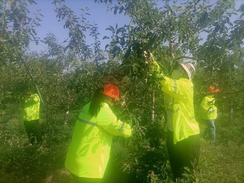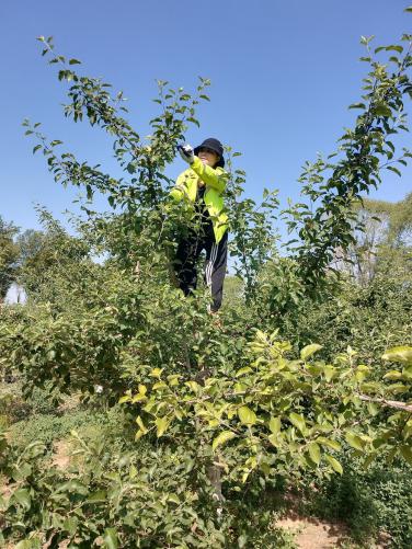 按照工作安排,5月22日,靖边公路段组织干部职工到苗圃参加集体劳动。劳动活动的主要任务是为苹果树进行“疏果”作业。劳动前,苗圃负责人杜宝林向大家讲解了“为什么要进行疏果”“如何疏果”等问题,现场演示“疏果”相关要领。初夏时节,茂盛的苹果树上,一个个圆溜溜的小苹果挂满了枝头,预示着又是一个丰收的好年景。按照苹果树田间管理“去小留大”的要求,靖边段全体机关工作人员为乔化苹果树715棵、矮化苹果树700棵、秋月梨130棵,进行了“疏果”作业。幸福源于奋斗,力量生于团结。近年来,靖边公路段坚持以苗圃基地为依托,不定时的组织干部职工开展集体性劳动活动,按照“人人参与、大家共享”原则分享劳动果实,进一步增强了干部职工的幸福感、获得感。