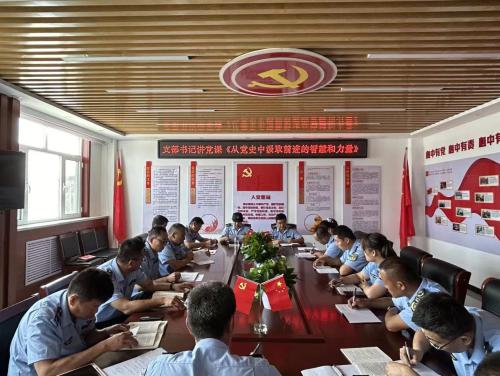 活动开始,由站长冯海洋带领全体职工领学《中国共产党简史》。随后,党支部书记樊磊讲了题为《从党史中汲取前进的智慧和力量》的专题党课,他强调,一要坚定历史自信,增强历史自觉,从成功中吸取经验,从失误中吸取教训,不断提升面对问题的斗争本领;二要坚定政治自信,增强政治自觉,始终坚定政治信仰、把准政治方向,做政治上的明白人、老实人;三要坚定理论自信,增强理论自觉,始终坚持思想建党、理论强党,坚持不懈用党的创新理论最新成果武装头脑、指导实践、推动工作;四是坚定以人为本,增强人民至上理念,要始终坚持全心全意为人民服务的根本宗旨,用心、用情服务好人民群众。接着,全体党员对着党旗庄严宣誓,重温入党誓词,感悟初心使命,厚植爱党情怀。