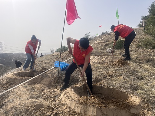 为深入践行“绿水青山就是金山银山”理念,充分发挥党员先锋模范作用。2025年4月3日,满堂川超限站党支部以实际行动践行绿色发展理念,组织开展了一场别开生面的“党建引领添新绿,义务植树当先锋”主题党日活动。部分党员及职工代表齐聚绥德县郝家桥村义务植树点,用汗水为大地增添生机,让党旗在生态建设一线高高飘扬。