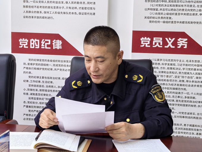 会议最后,该站党支部书记对本次专班学习进行了总结讲话,并用“三个转化”为两日的学习定标、定向。曹书记强调:全体工作人员不仅要把学习内化于心、外化于行,更要把学习成效转化为政治定力,做严守纪律的明白人;转化为治理效能,做规范执法的践行者;转化为服务动能,做群众出行的守护者。在今后的治超工作中,我们要坚持把群众满意作为检验标准,坚持边查边改、立行立改、系统整改、开门整改,并将“公”字铭刻于心,把“廉”字践诺于行,以治超执法的“硬作风”护航群众出行的“平安路”,用风清气正的政治生态为榆林公路更高质量发展展现新作为。
