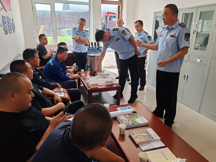 面对这一突发状况,大保当超限站领导班子迅速做出反应,将其视为重中之重的紧急任务。他们第一时间深入检测场地,现场的情况尽收眼底。车辆有序排列,司机们的焦虑与无奈写在脸上。领导班子深知,此刻不仅要保障交通运输的安全有序,更要安抚好司机们的情绪。于是,他们将温暖的关怀送到了每一位滞留司机身边。邀请司机们走进温馨的“司机之家”,这里成为了缓解紧张与焦虑的港湾。工作人员们热情地与司机们围坐在一起,耐心倾听他们的遭遇,用专业的知识和真诚的态度为他们解释超限处理的流程和法规。