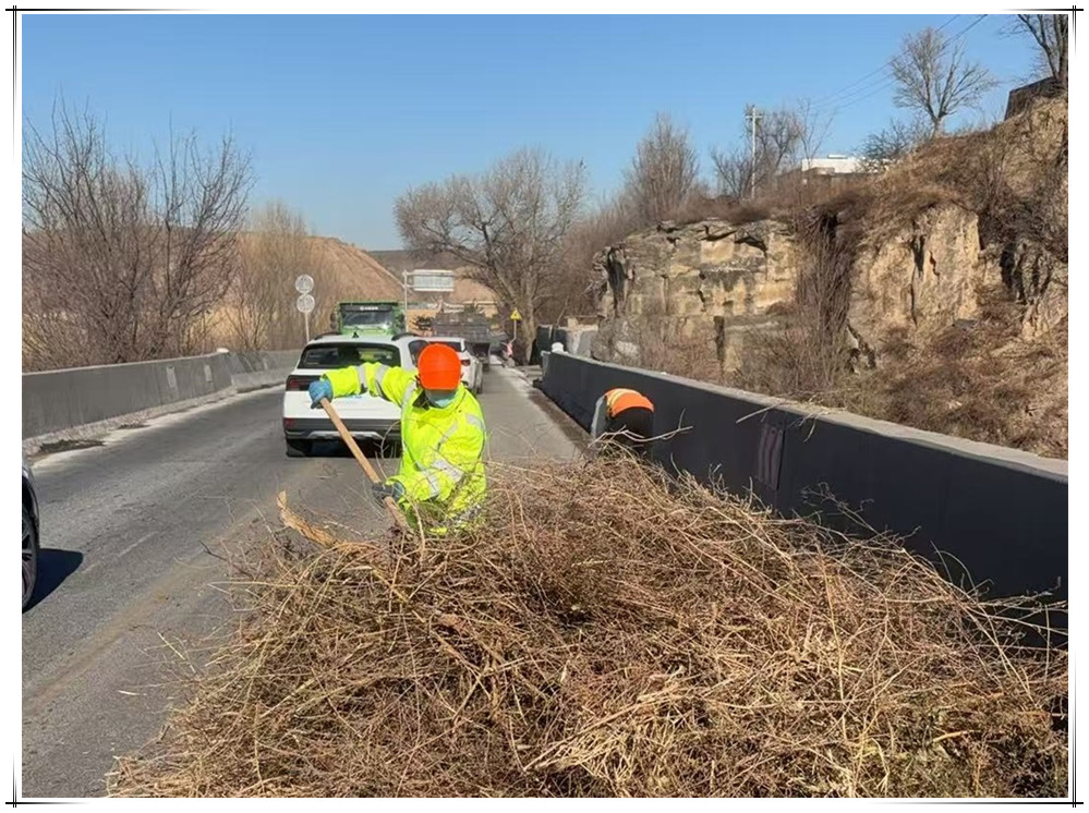 面对刺骨严寒,养护工人们毫不懈怠,手持铁锹、扫帚等工具,对公路沿线积雪进行集中清理。他们重点铲除路面、路肩及桥梁匝道的残雪积冰,确保车辆通行安全。同时,对公路两侧绿化带内的杂草进行修剪清运,彻底清理边沟内的枯枝落叶、塑料袋等垃圾,不放过任何卫生死角。