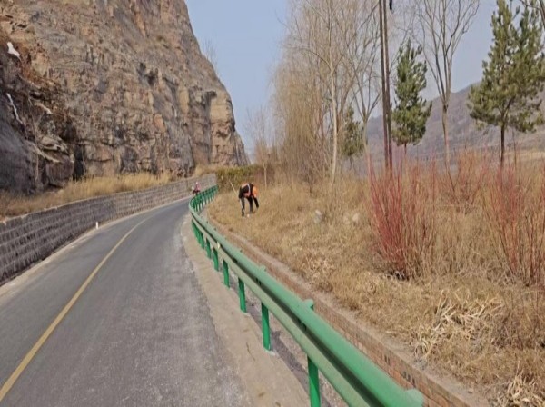 我段养护人员采取“机械+人工”协同作业模式,机械清扫车沿路进行保洁,人工则重点对边沟、路肩、绿化带等机械难以触及的卫生死角进行清理,细致捡拾鞭炮碎屑、塑料瓶、烟头等各类垃圾,确保路面无杂物、边沟无淤塞。路保人员对违规设置在公路用地范围内的广告牌、横幅等进行逐一拆除,同时耐心向沿线群众宣传《中华人民共和国公路法》等相关法律法规,引导大家爱路护路。